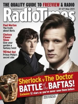 | Posted: 19 May 2011 01:20 AM PDT This Sunday sees the annual British Academy Television Awards take place at the Grosvenor House Hotel, and the new edition of the Radio Times features two covers dedicated to the ceremony! Entitled "Sherlock v The Doctor", each cover presents both Benedict Cumberbatch and Matt Smith in the "Battle of the BAFTAS", as seen below: Inside the magazine, Kathryn Flett explores the Leading Actor category that the two actors are nominated for, alongside their other 'rivals' for the award, Jim Broadbent (Any Human Heart) and Daniel Rigby (Eric and Ernie). The magazine also features other award nominees, including recent Doctor Who guest stars Hugh Bonneville and Suranne Jones. Plus, of course, Saturday's "Pick of the Day", The Rebel Flesh! This is the first time that a leading actor from Doctor Who has ever been nominated for the role at the BAFTAS. | ||||||||||||||||||||||||||||||||||||||||||||||||||||||||||||||||||